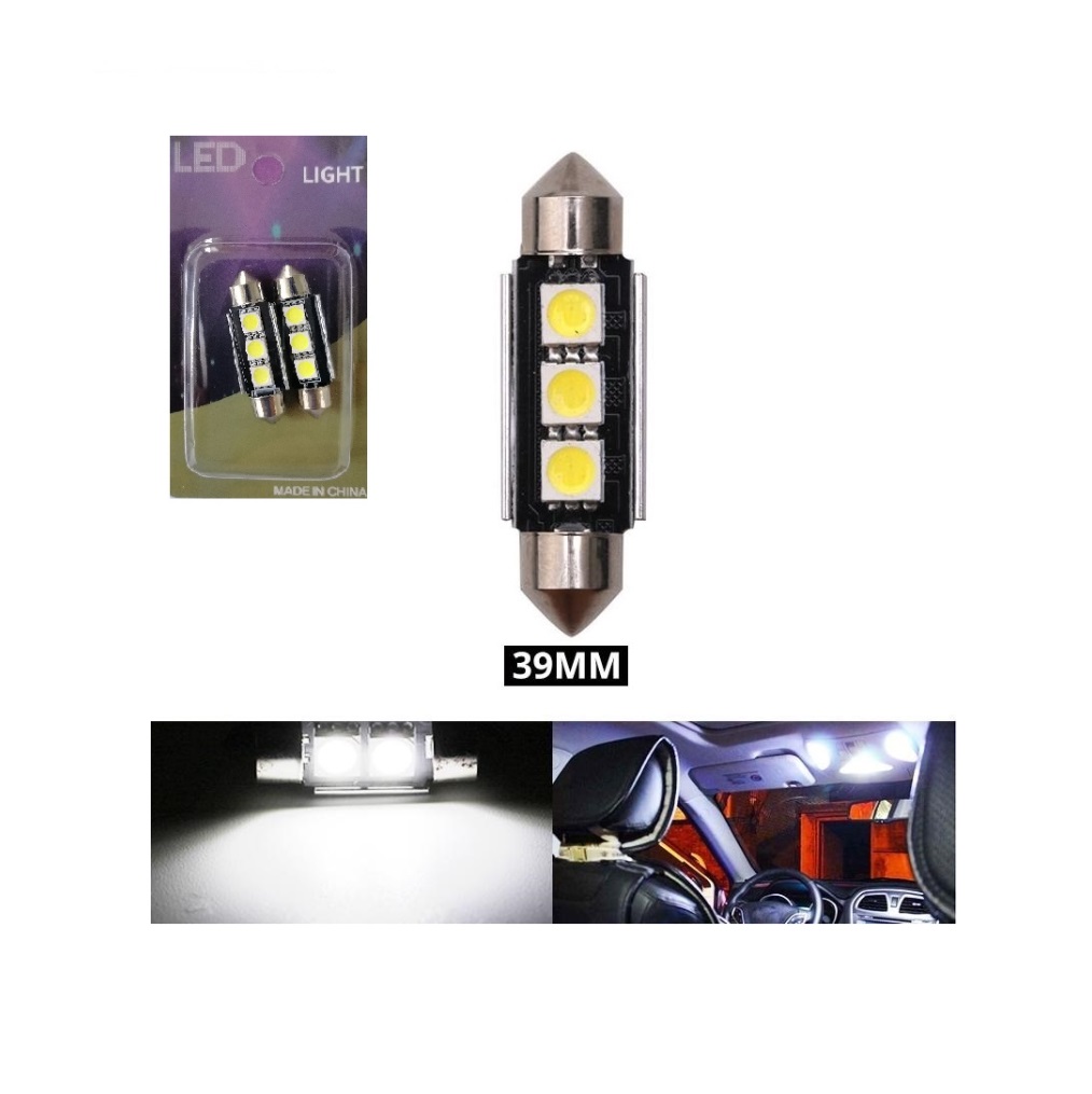 Conjunto de 2 lâmpadas LED 3 SMD 5050 39mm 12V luz branca Canbus.
