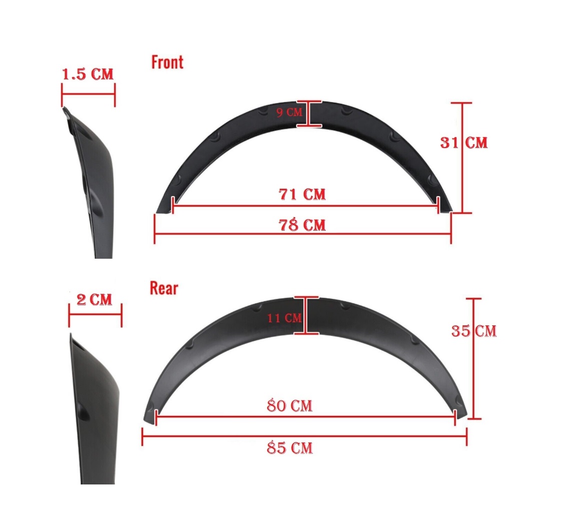 Kit de abas de roda universais em plástico PVC, kit de quatro abas frontais e traseiras.