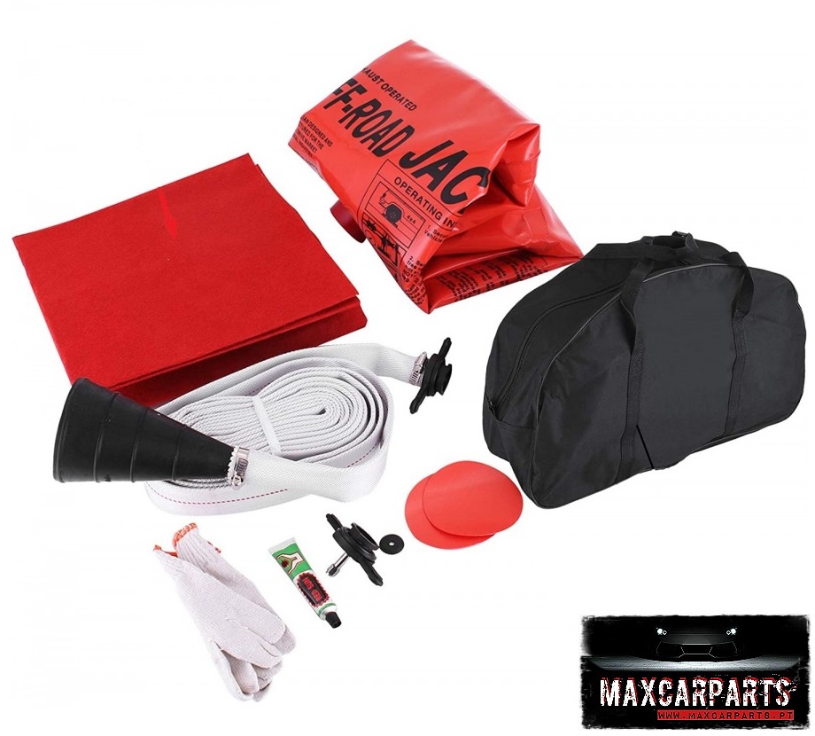 Air Jack é a ferramenta rápida e confiável para levantar/elevar o seu veículo em lama, areia ou neve. O Air-Jack é facilmente insuflado através da sua tubagem que se conecta ao escape da viatura ou através de um compressor portátil. O Air Jack é feito de alta tenacidade 1000 Denier Nylon, revestido em ambos os lados com PVC plastificado. Com esta composição ultra-ultra-resistente de materiais, levantar o seu veículo é quase sem esforço, independentemente do tipo de solo.