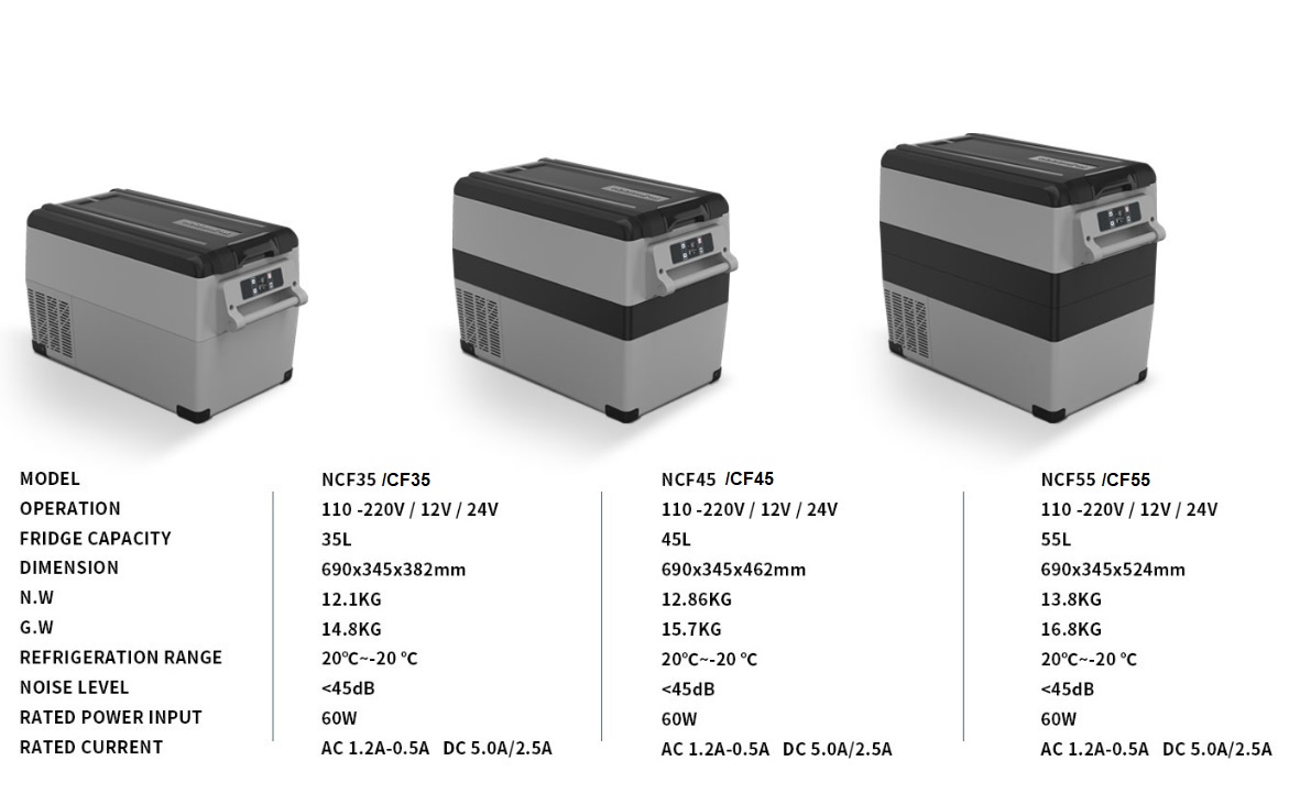 Com alimentação via isqueiro 12/24V DC e a 220V (110V-240V) através de transformador externo incluído