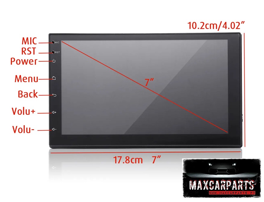 Tamanho do Ecrã: 7 polegadas Touchscreen, 2.5D capacitive, High definition 1080P