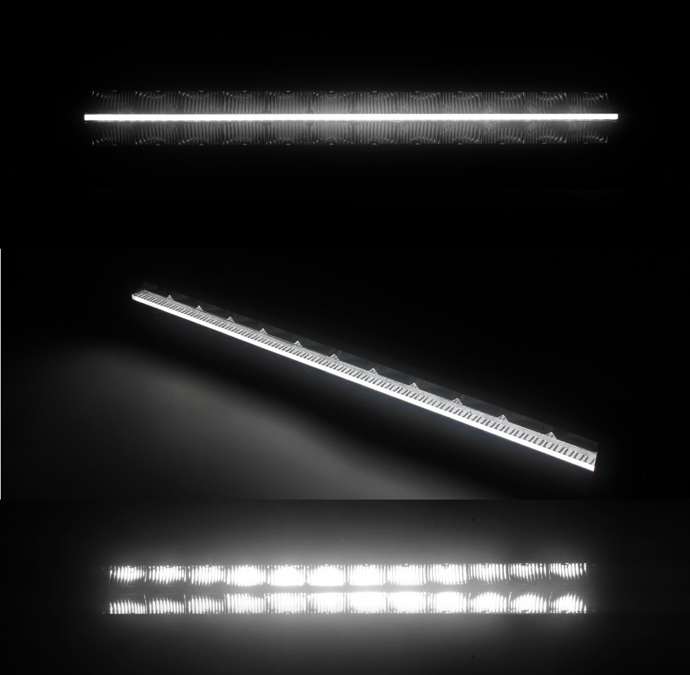 Barra com emissão de luz indireta, diferente do refletor das barras mais comuns, reflexão de luz de alta eficiência. O refletor cromado e a lente de cobertura transparente minimizam a perda de eficiência luminosa.