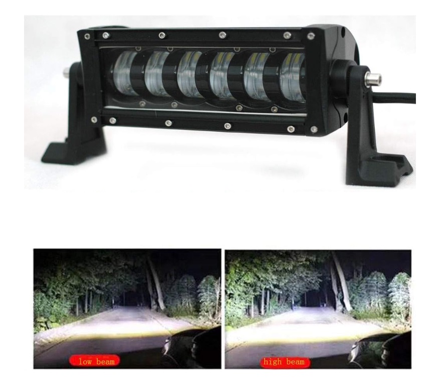 Os diodos são dispostos em duas alturas: 1ª com 6 leds x 3W = 18W (Espalhador\médios), 2ª com 6 leds x 5W = 30W Longo alcance/máximos)