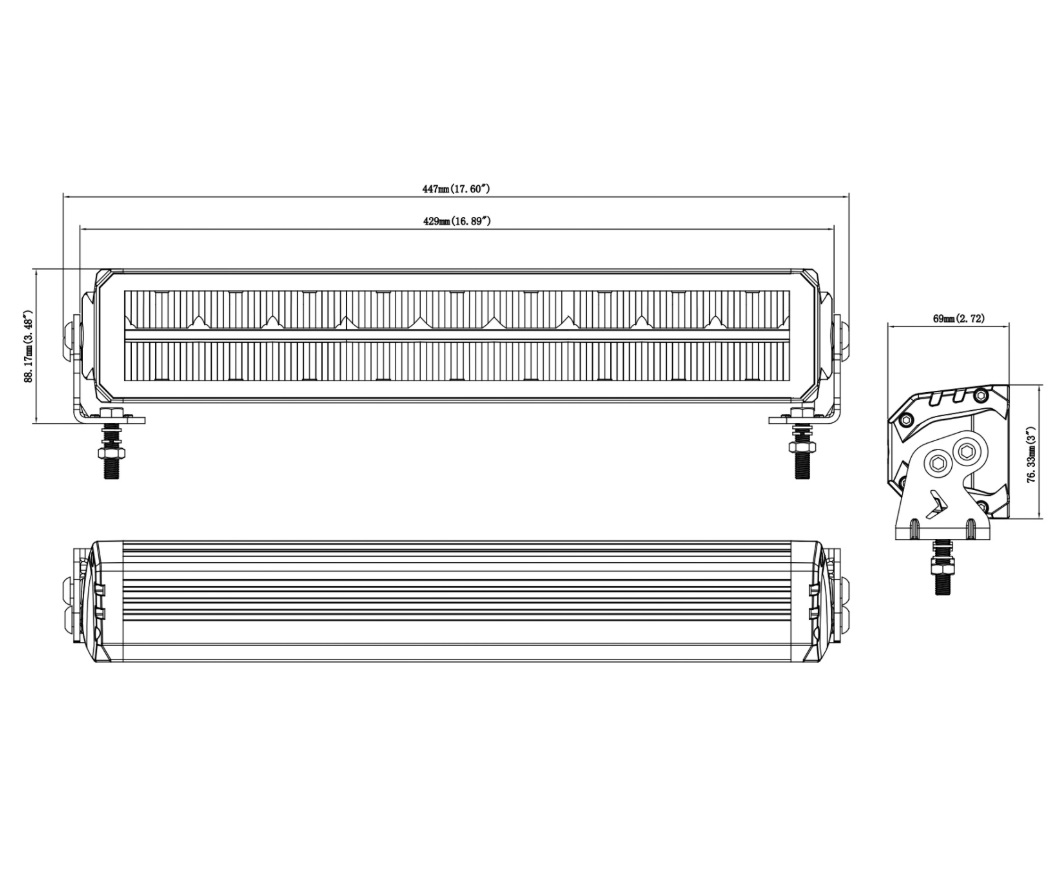 Barra com emissão de luz indireta, diferente do refletor das barras mais comuns, reflexão de luz de alta eficiência. O refletor cromado e a lente de cobertura transparente minimizam a perda de eficiência luminosa.