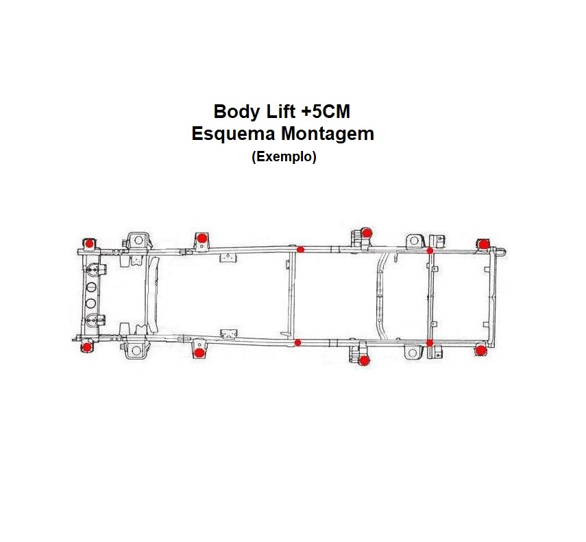 Kit de elevação específico para Suzuki Grand Vitara, permite elevar a carroceria em relação ao chassi em +5cm.