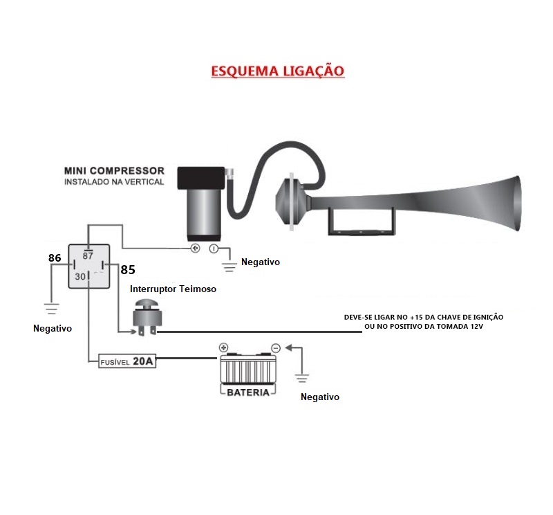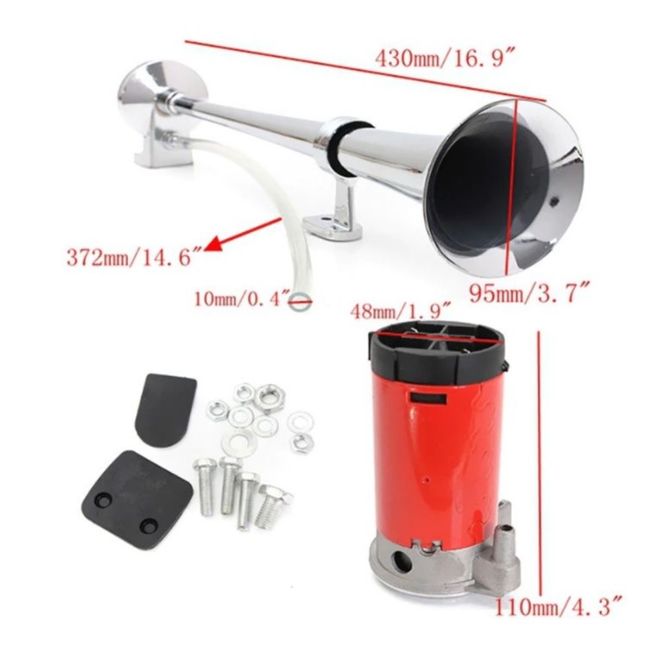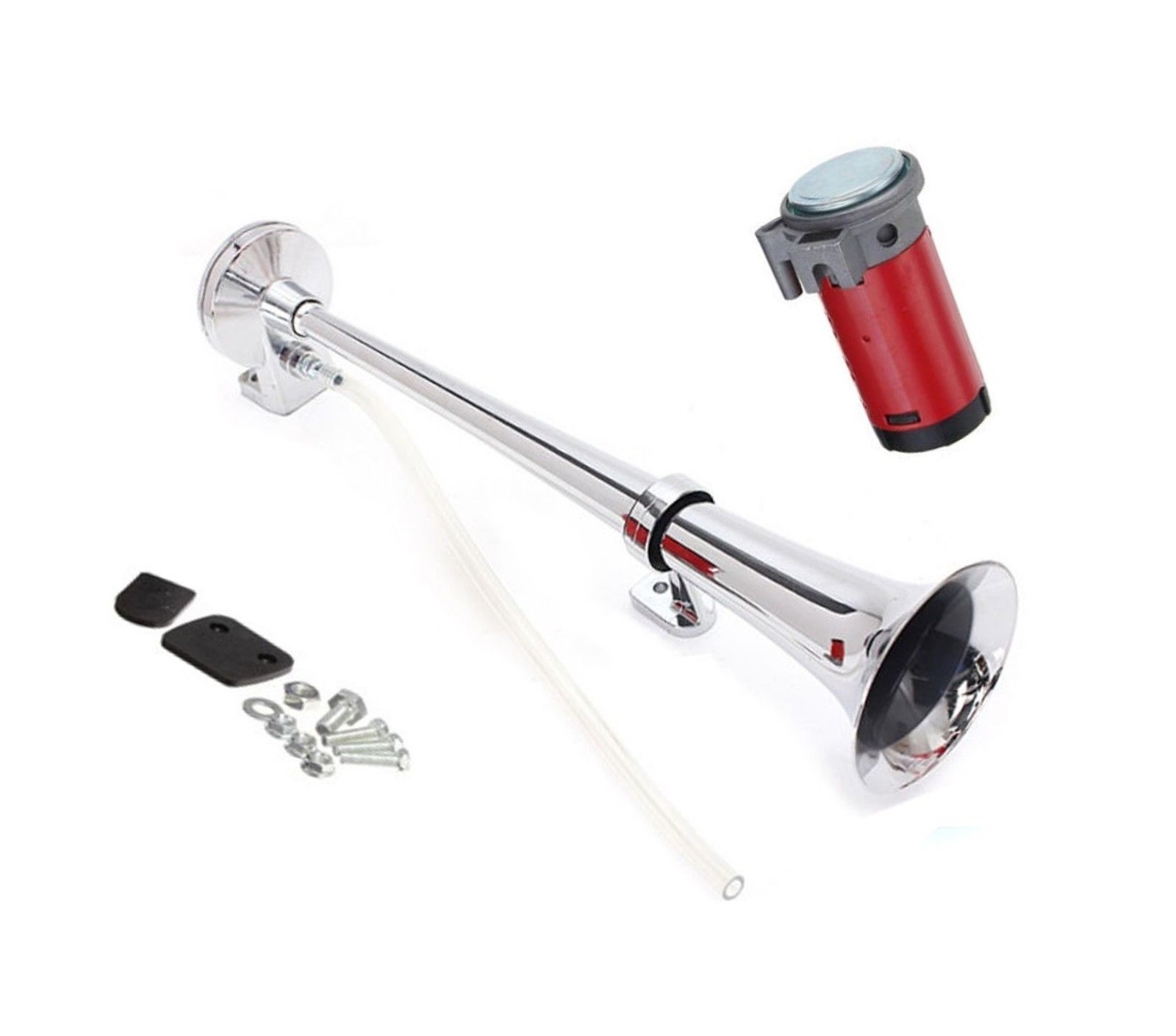 Buzina a Ar com mini Compressor incluído, funcionamento a 12V.