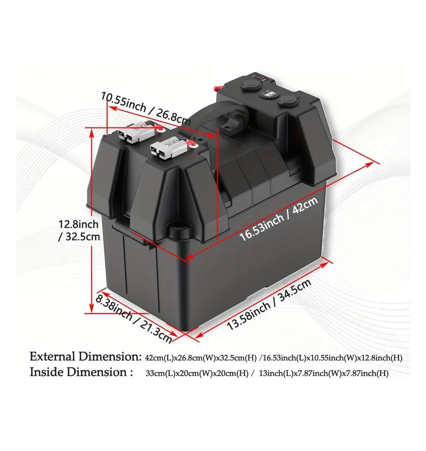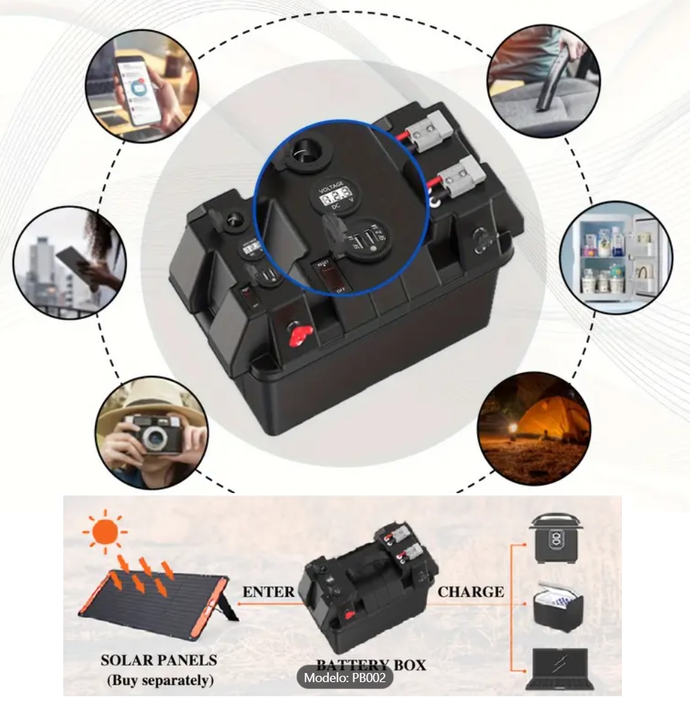 Perfeito para utilizar com acessórios tipo compressor de ar, arca frigorífica entre outros. Uilizando um gestor/unidade de comando de dupla bateria em conjunto com esta caixa.