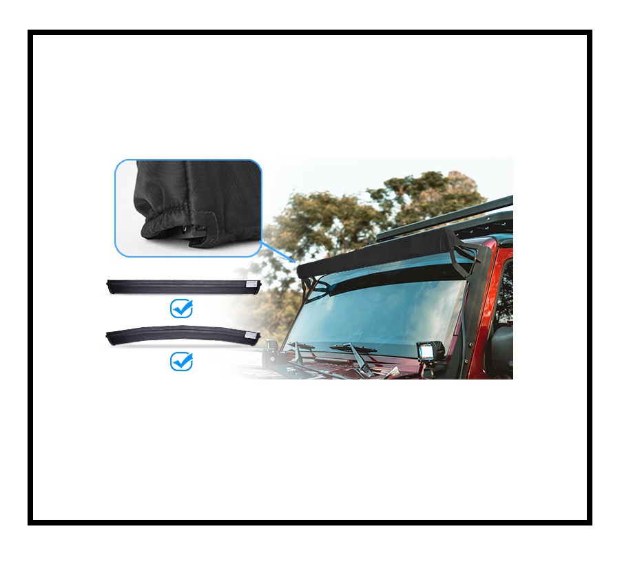 Este modelo é normalmente utilizado em barras de dupla fila de leds (aproximadamente 75mm de altura sem suportes laterais) e com medida de 52 a 62cm de comprimento (incluindo suportes laterais). Nas laterais, a capa têm "foles" de forma a se adaptar á largura extra dos suportes laterais das barras.