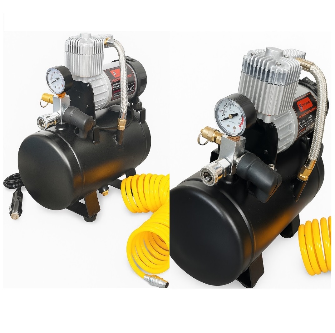 Compressor de ar com depósito de fácil instalação, basta uma ligação aos 12V da bateria da viatura e está pronto a utilizar (aconselha-se a utilização de relé e fusivel na ligação á viatura).