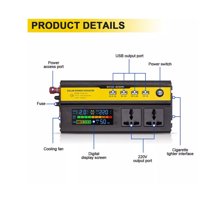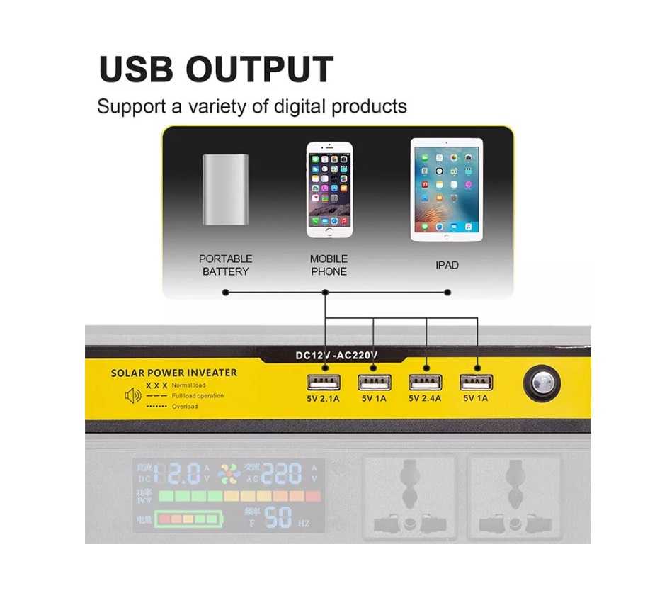Conversor de corrente digital de 12v DC para 220v AC a 1200W.
