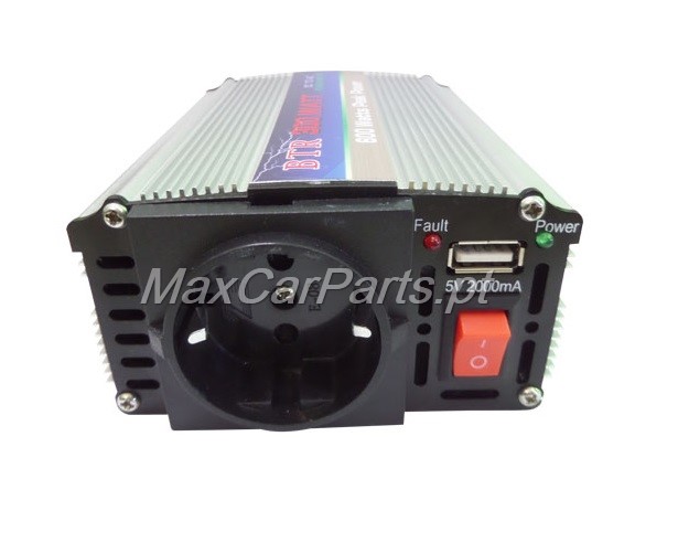 Inversor de corrente elétrica 12VDC com terminais e fusíveis