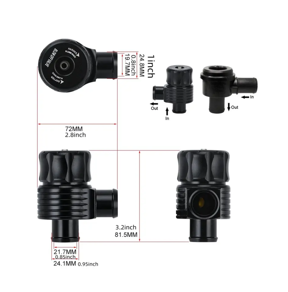 Válvula de descarga do turbo universal com tubagem dupla e em aluminio, para instalações de 25mm.