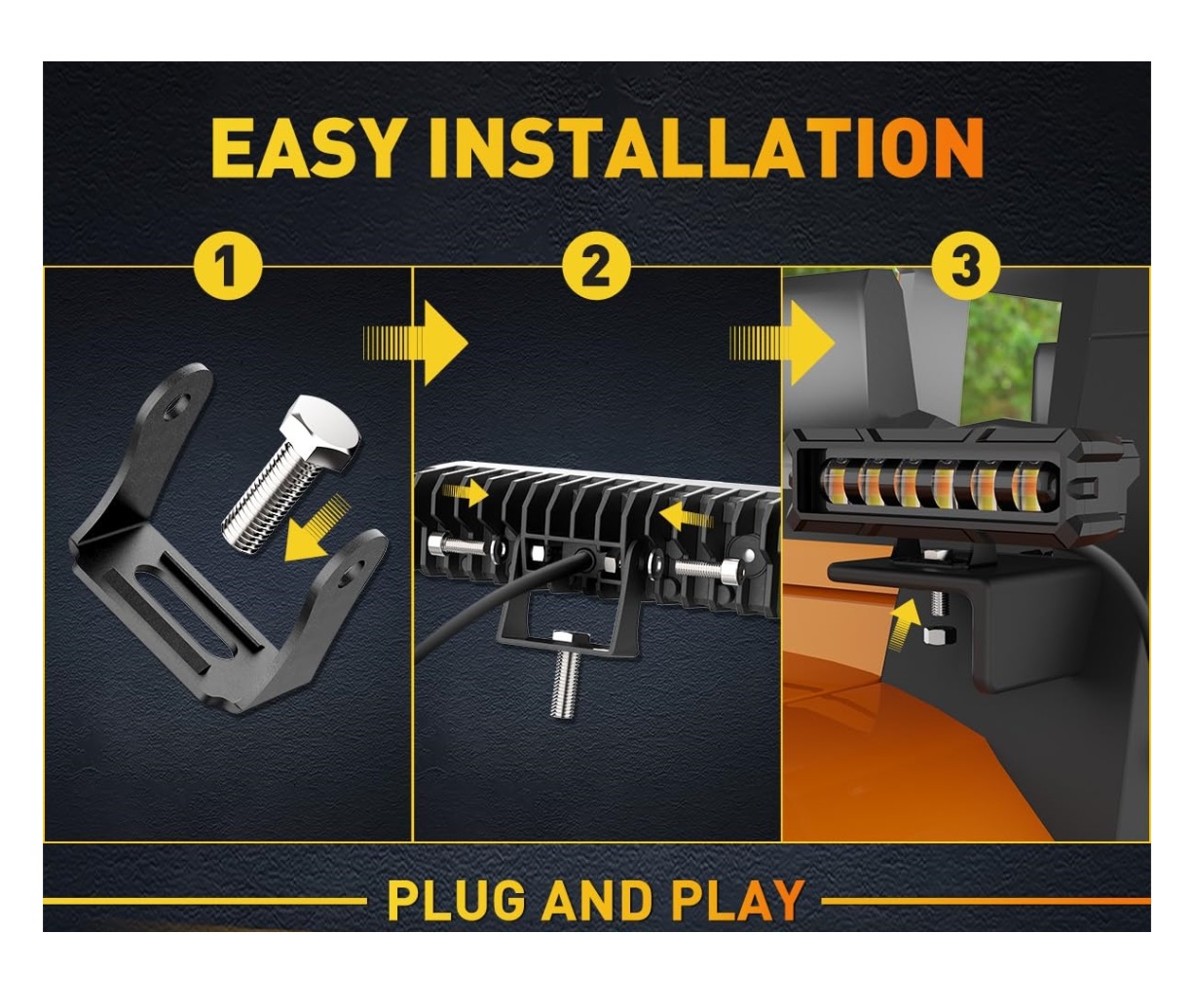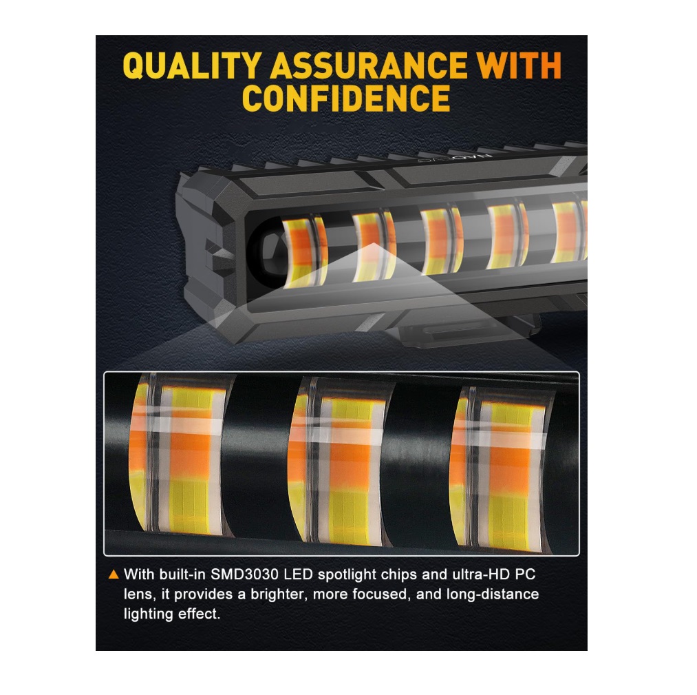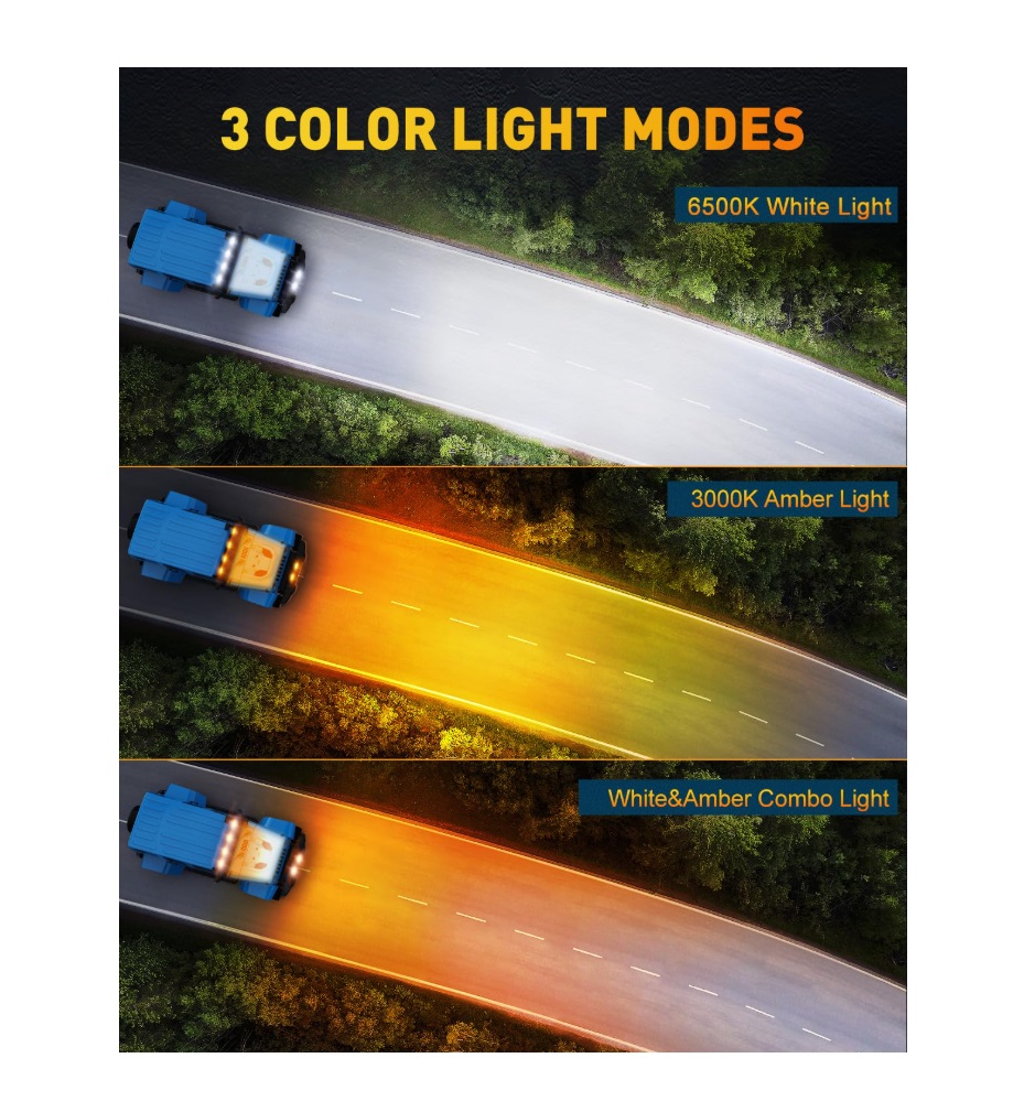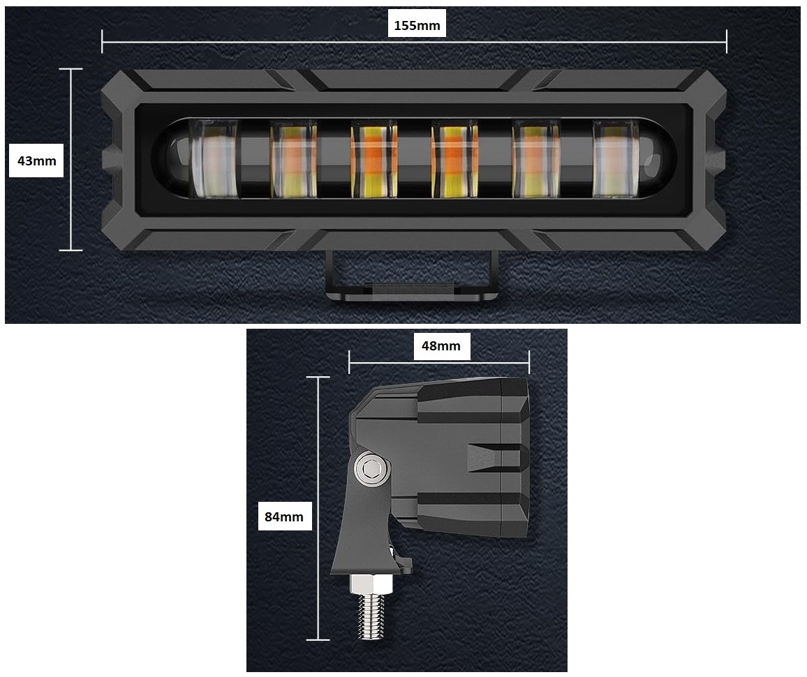 Farol auxiliar com dupla iluminação (3000k e 6500k), lentes 7D e 3 modos de luz.