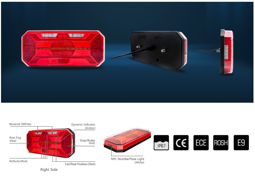 Kit de Farolins Traseiros Led, com 7 Funções, iluminação de pisca dinâmico.