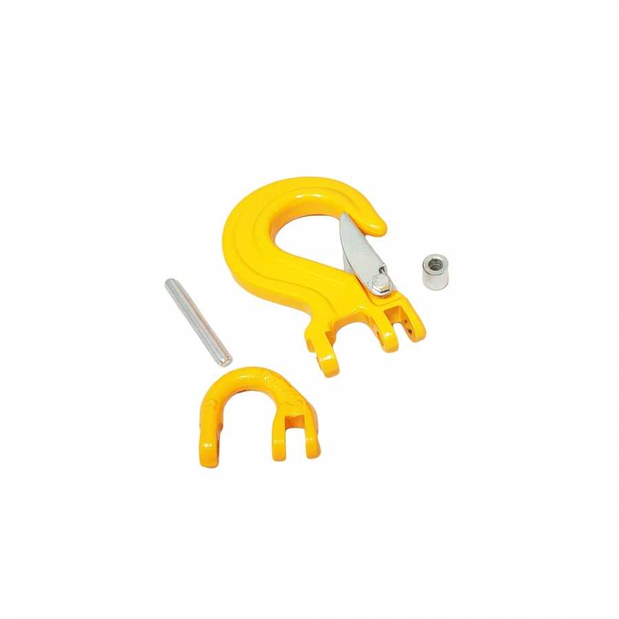 Gancho industrial amarelo com trava de segurança prateada