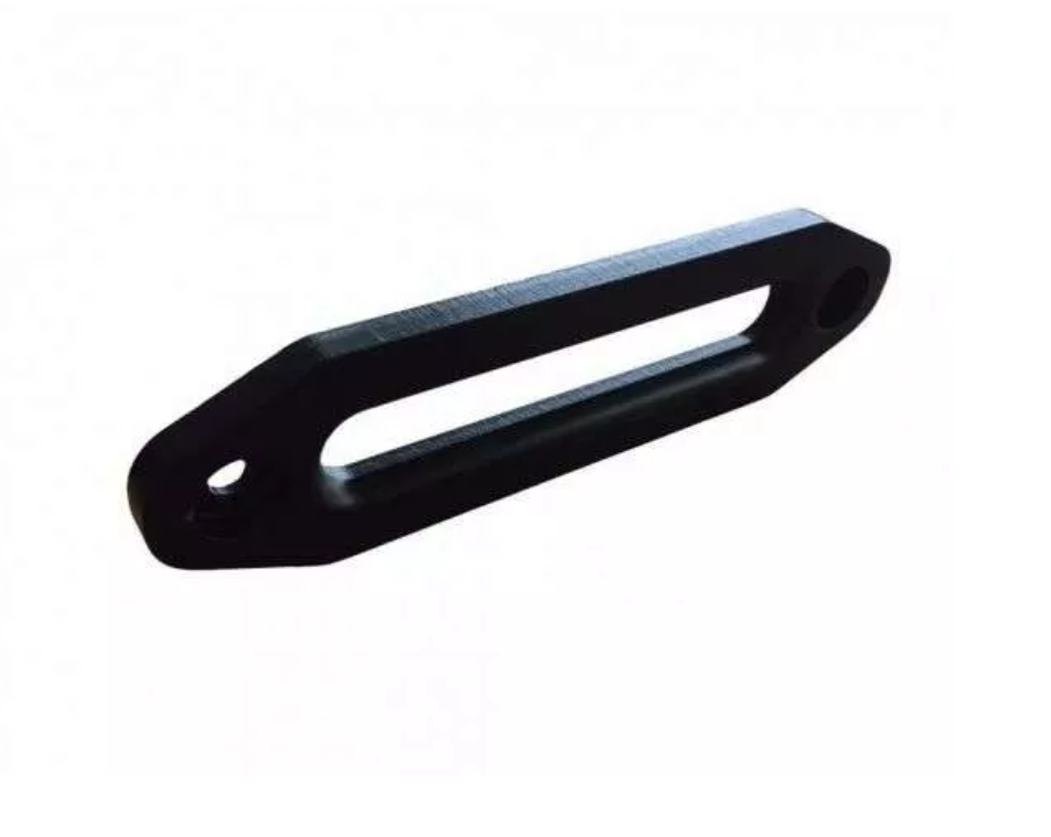 Cabo preto com dois furos para fixação sobre fundo branco.