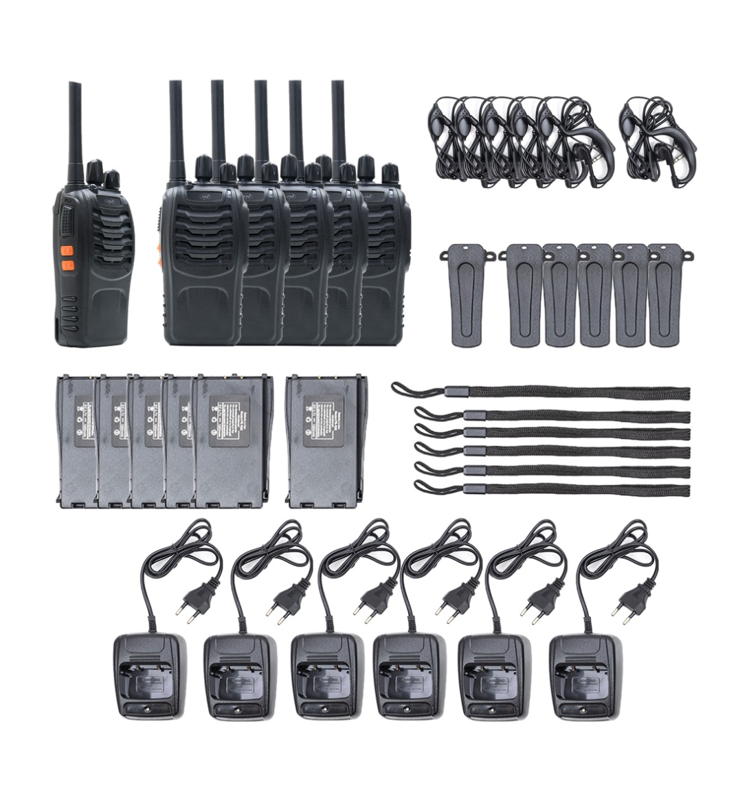 O kit de 6 estações portáteis PNI PMR R40 PRO é ideal para equipas que precisam de uma solução eficaz de comunicação de curta distância.