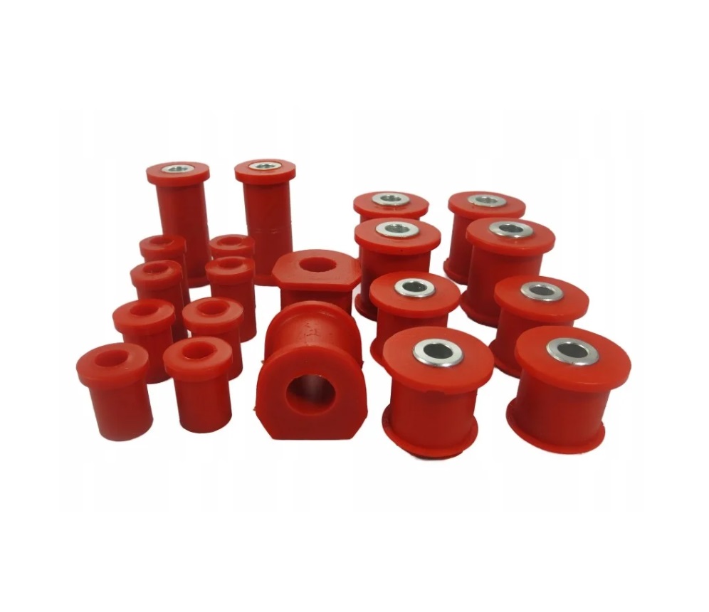 Kits de casquilhos da MaxCarParts, são casquilhos de fabrico Europeu e de elevada resistencia, são reforçados evitando assim os comuns problemas das borrachas originais do Jipe, ideais para utilização Off-Road. São fabricados com Poliuretano de boa qualidade de forma a resistirem as mais extremas condições de uso.