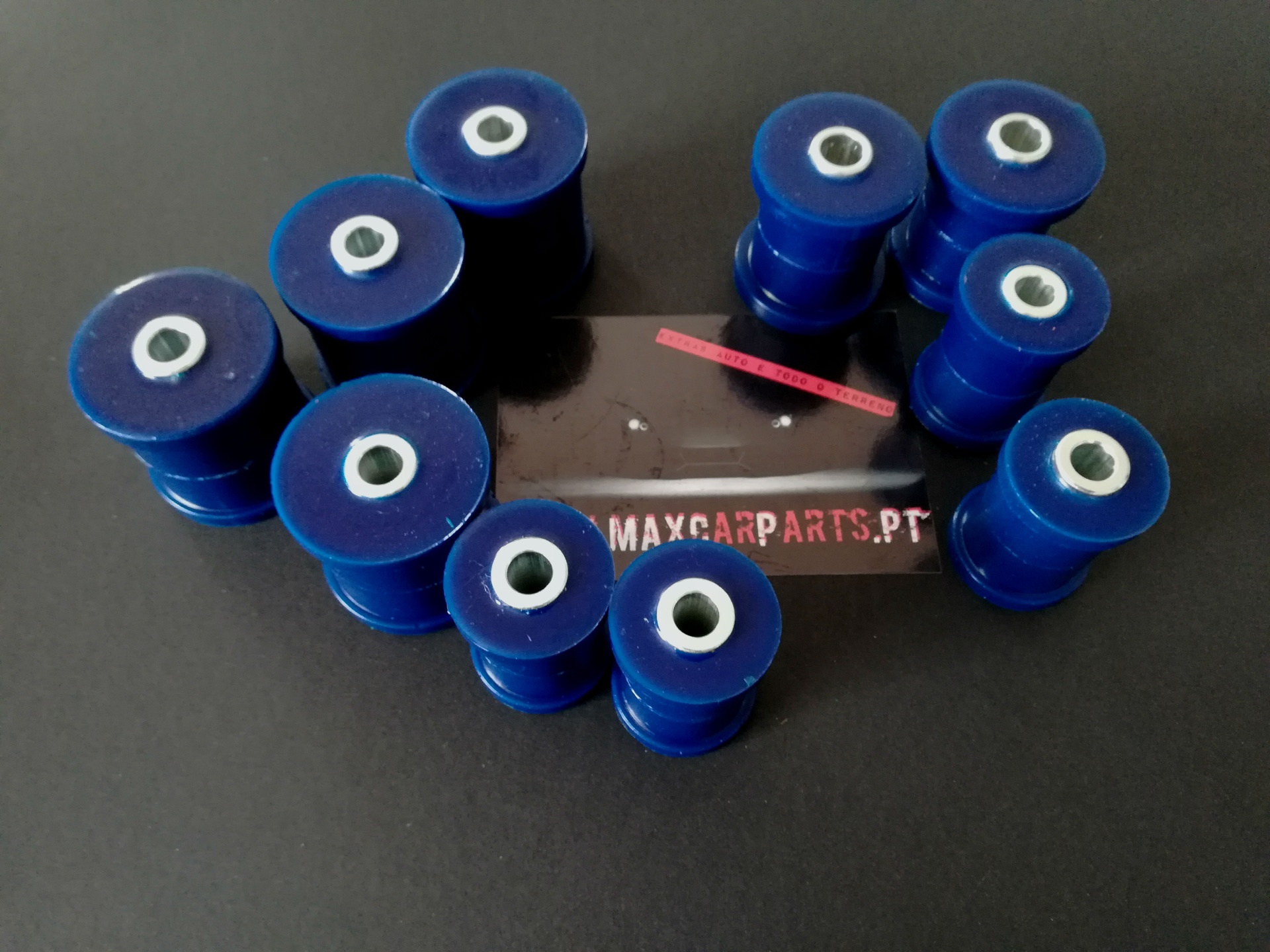 Kits de casquilhos da MaxCarParts, são casquilhos de fabrico Europeu e de elevada resistencia, são reforçados evitando assim os comuns problemas das borrachas originais do Jipe, ideais para utilização Off-Road. São fabricados com Poliuretano de boa qualidade de forma a resistirem as mais extremas condições de uso.
