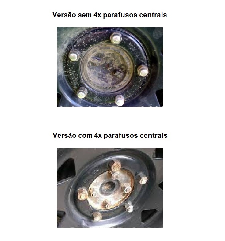 Apenas necessário confirmar na viatura qual a versão, com ou sem quatro parafusos no centro do tambor de travão (ver imagem).