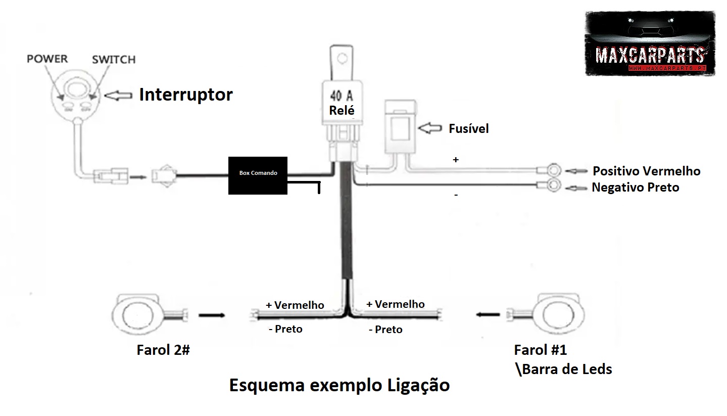 Kit completo de cabos para iluminação auto (Barras de leds/faróis de trabalho, etc)