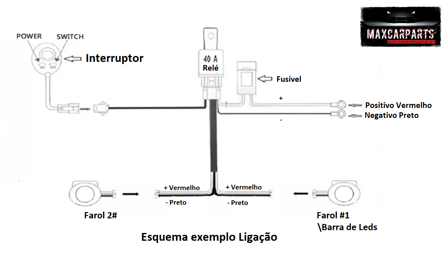 Kit completo de cabos para iluminação auto (Barras de leds/faróis de trabalho, etc)
