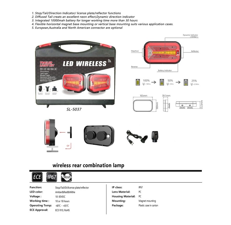 Kit de Farolins Traseiros Led Portáteis com transmissor sem fios e bateria, transferência facilitada entre todos os seus veículos sem necessidade de ferramentas para conectá-los.