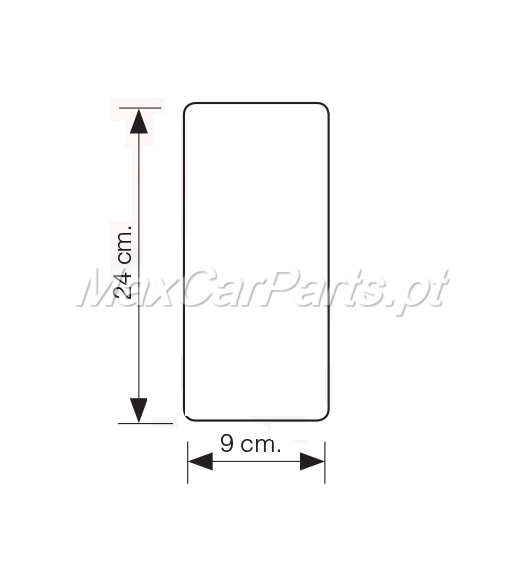 Placa retangular branca com cantos arredondados e medidas indicadas