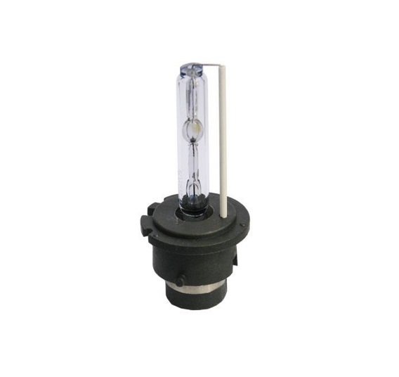 Lâmpada automóvel tipo xenon com base preta e corpo de vidro transparente