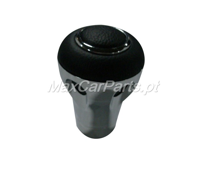 Manete de Mudanças universal em pele preta com acabamentos em aluminio cromado.