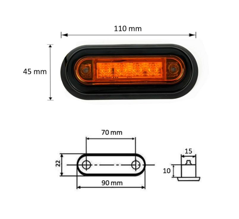 -90mm (comprimento) x 22mm (largura) x 100mm (profundidade)