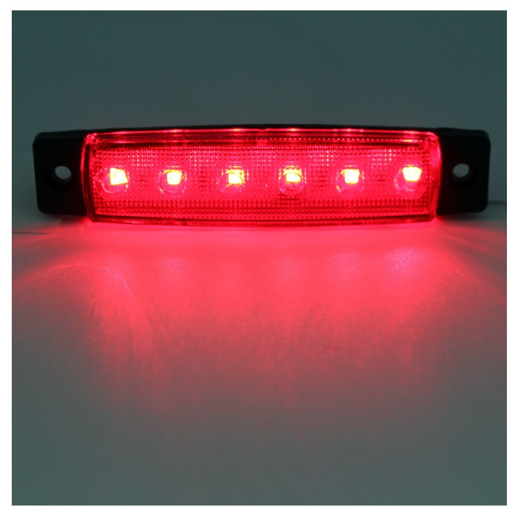 Luz LED rectangular vermelha para veículo com seis LEDs e suporte preto