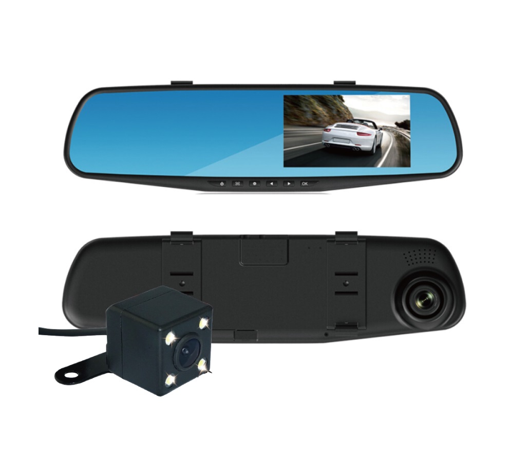 O gravador de vídeo bidirecional no espelho retrovisor com câmera auxiliar traseira é o dispositivo perfeito para quem valoriza boa qualidade de imagem a um preço acessível. A câmera possui uma alça que fornece aderência mesmo durante manobras difíceis ou cavidades na estrada.