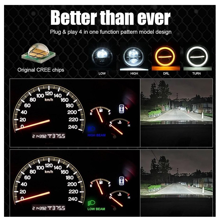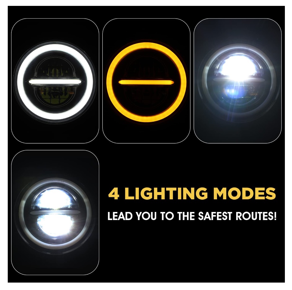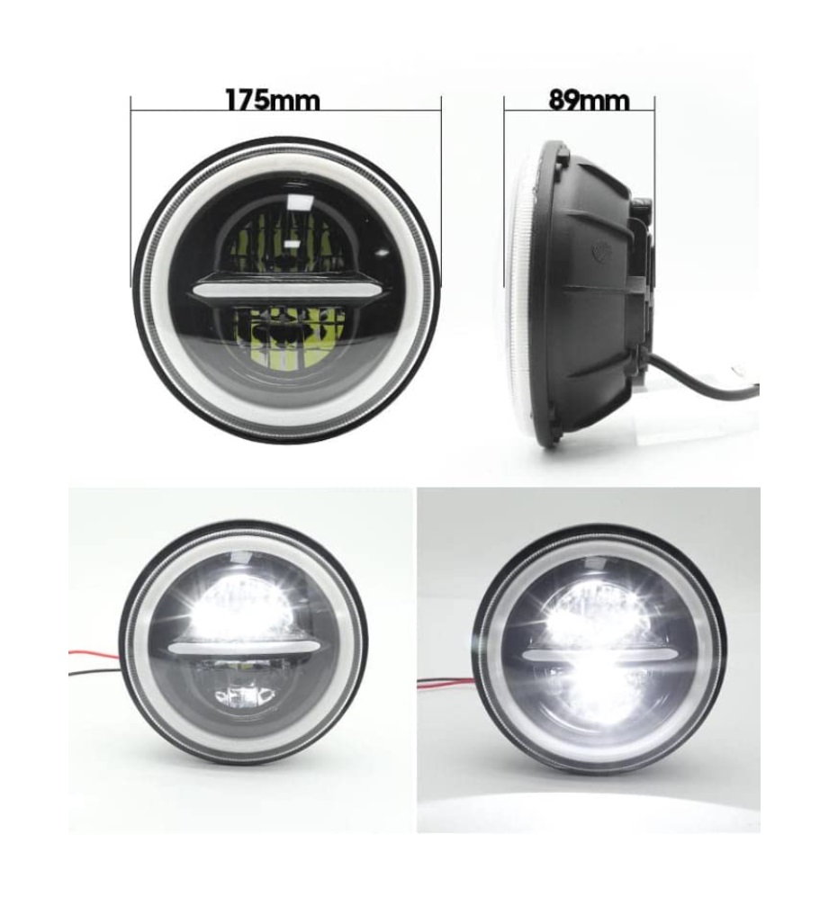 Par de Faróis LED com Luz Diurna, 150W (75W por farol), 15000lm e com 7 Polegadas de tamanho (178mm).