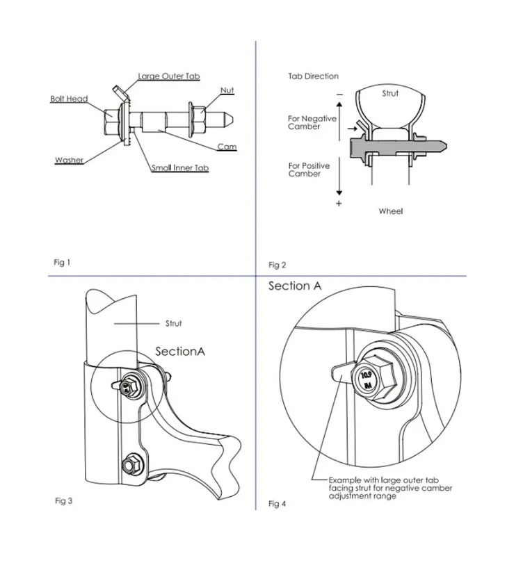 Útil para corrigir o ângulo da roda após a instalação de um kit de elevação.