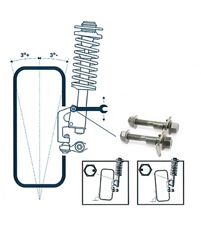 Conjunto de 2 parafusos M14 excêntricos para ajuste do camber da suspensão da frente para Suzuki Vitara e Grand Vitara, permitem ajustar cerca de -1,75° a +1,75°.