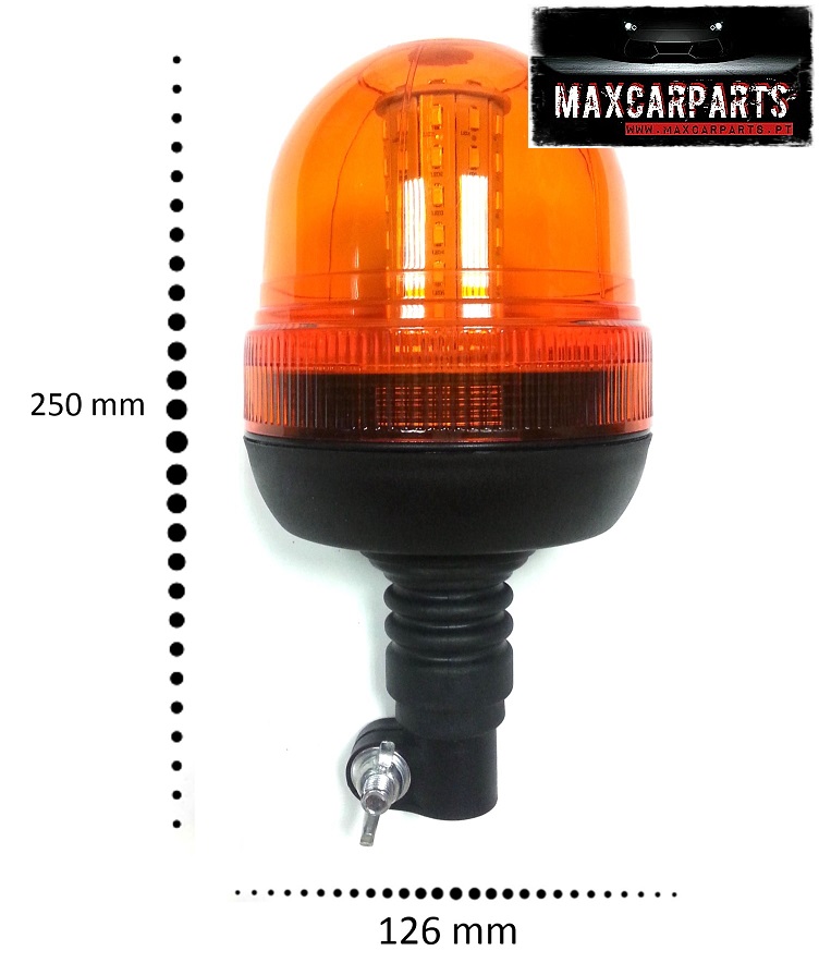 Sinalizador rotativo laranja para veículos com base preta e medições indicadas