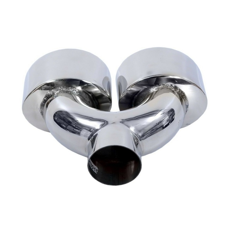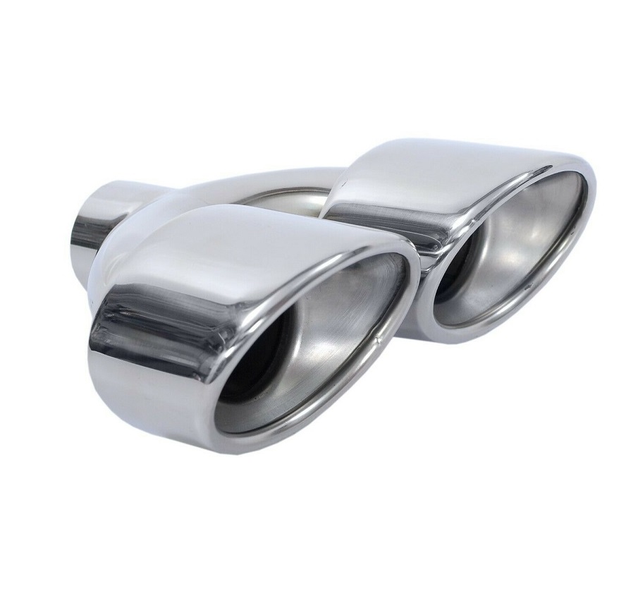 Conjunto de escape automóvel cromado com duas saídas arredondadas