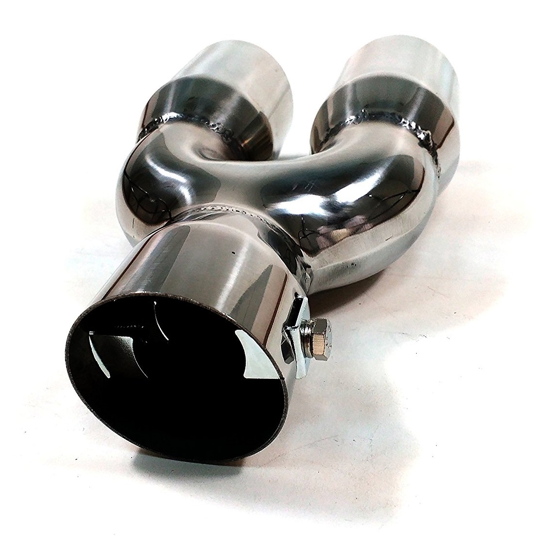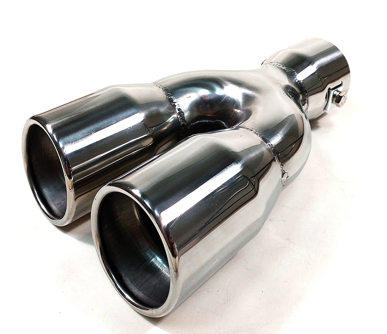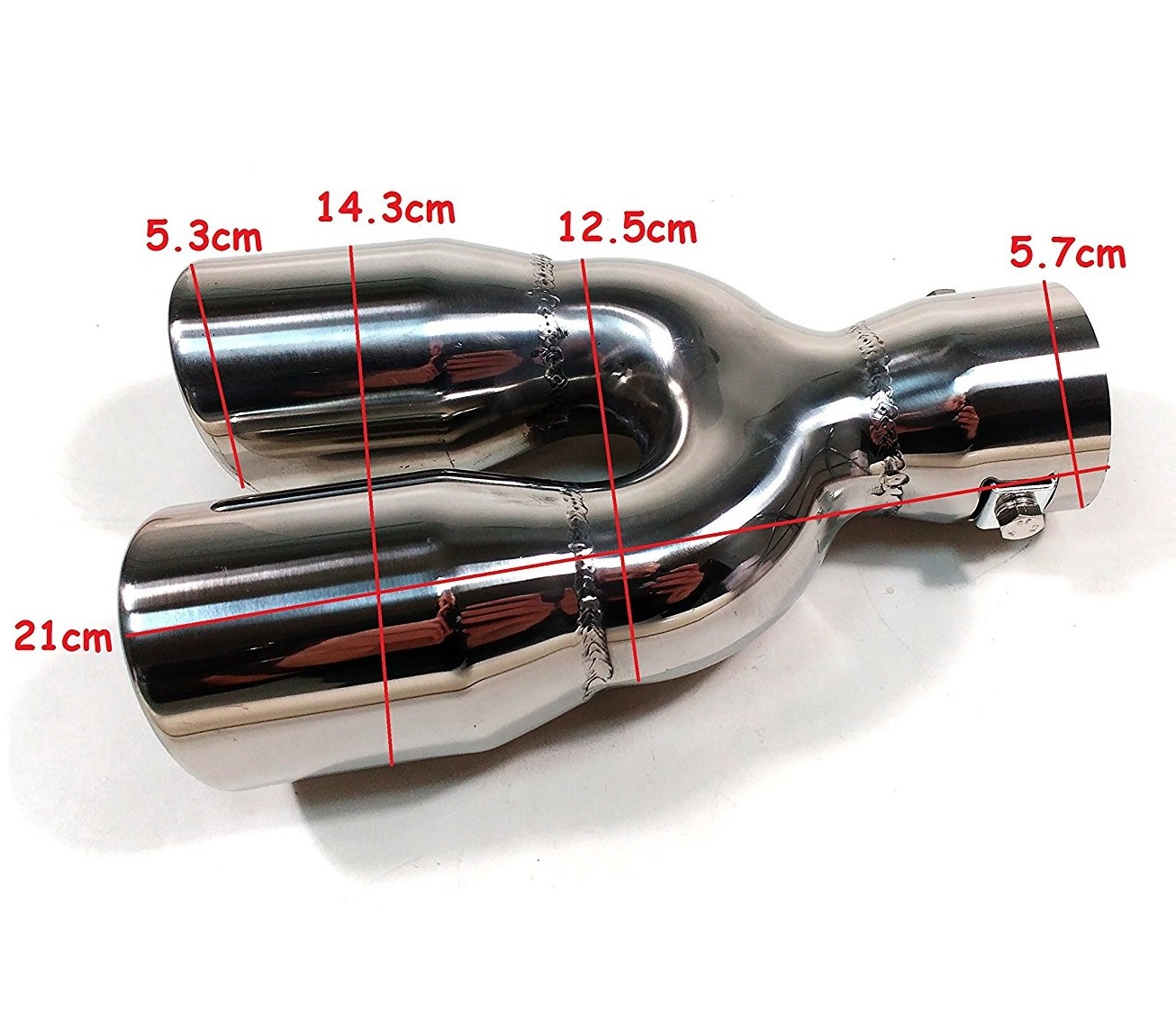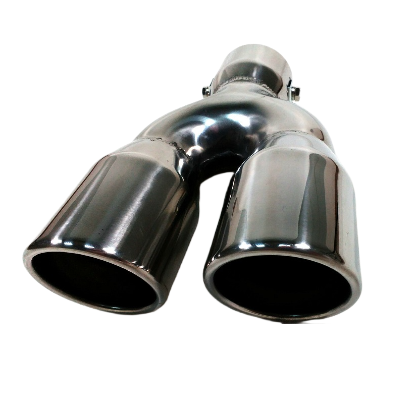 Ponteira de escape em aço inoxidável brilhante com duas saídas