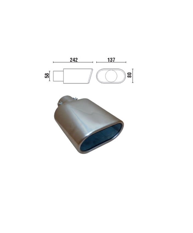 Ponteira de escape automóvel em aço inoxidável polido com esquema de medidas