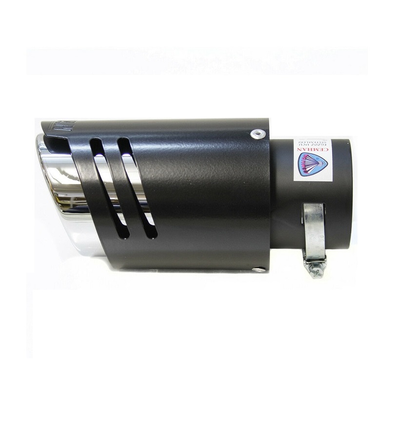 Escape de mota cromado com protetor preto e selo CHEMIAN