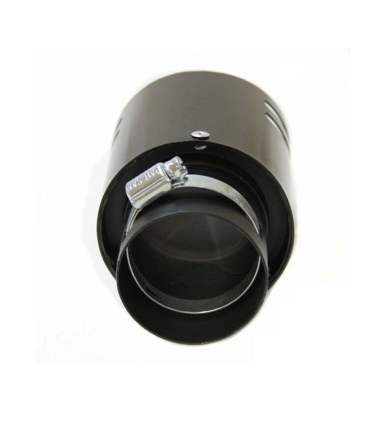 Ponteira de escape universal em aço inoxidável com revestimento preto.