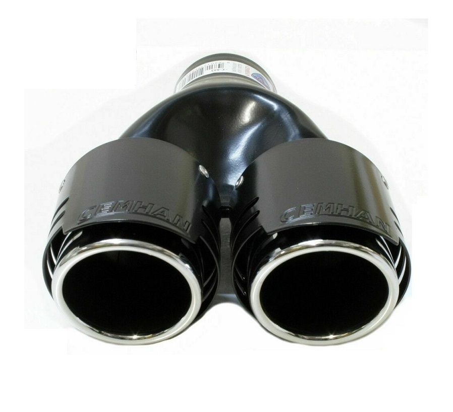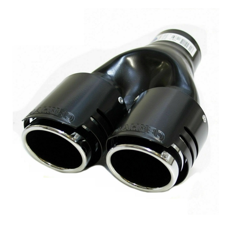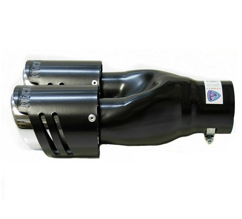 Extensão dupla de escape automóvel preta com ponteiras cromadas ovais