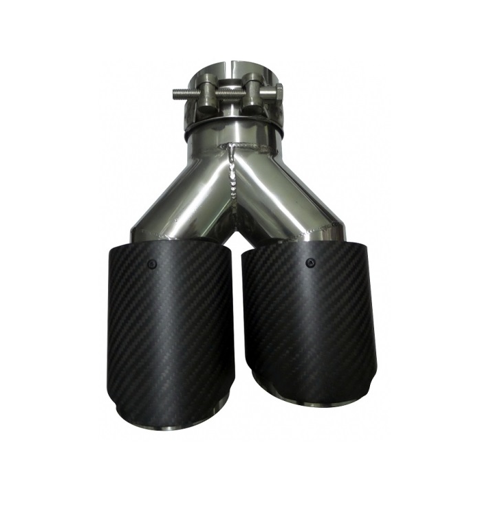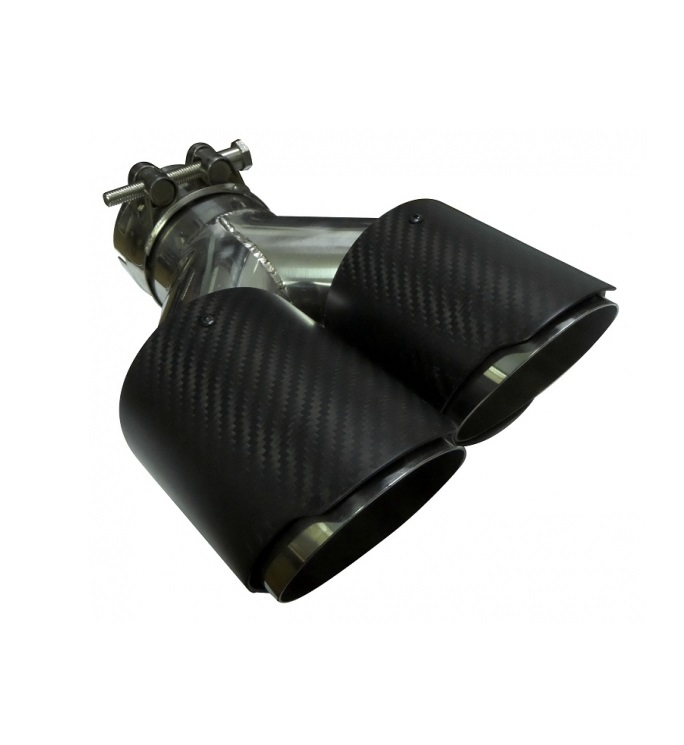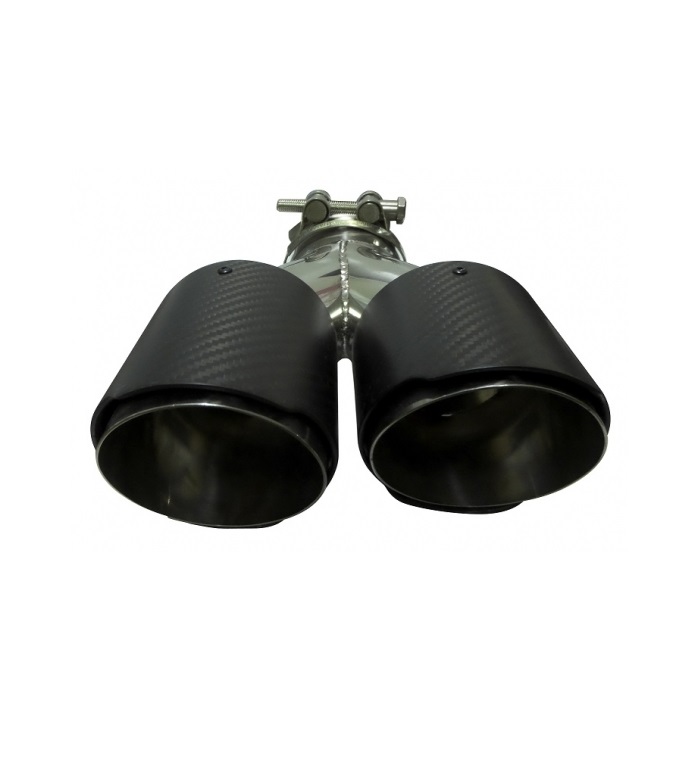 Ponteira de escape universal em aço inoxidável com revestimento tipo carbono.
