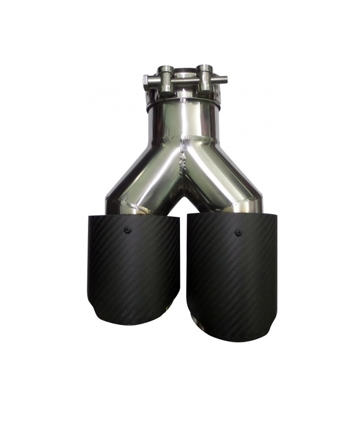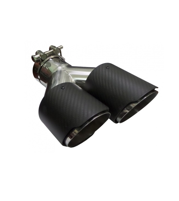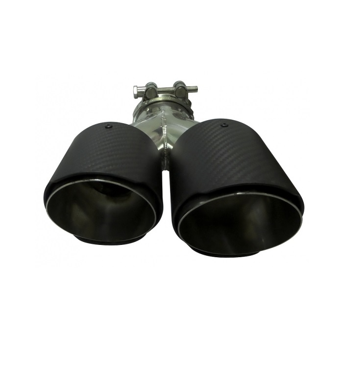 Ponteira de escape universal em aço inoxidável com revestimento tipo carbono.