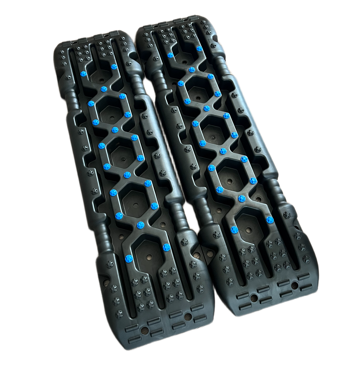 Pranchas de resgate 4x4 em plástico. Os pranchas são equipamentos indispensáveis para um veículo off-road que se desloca em terrenos difíceis. Muitas vezes acontece que as rodas da viatura não conseguem ter tração (por exemplo, terreno coberto de neve, lama densa, banda de rodagem fraca, areia solta), então colocamos as pranchas sob as rodas para fornecer a tração adequada. Em uma situação onde a roda está enterrada, ela deve ser levantada previamente com o Hi-Lift / Farm-Jack.