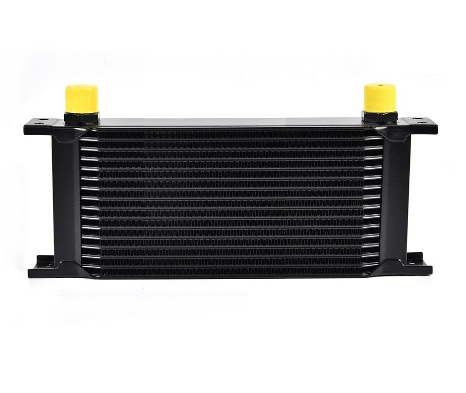 Radiador de óleo automóvel preto com tampas amarelas
