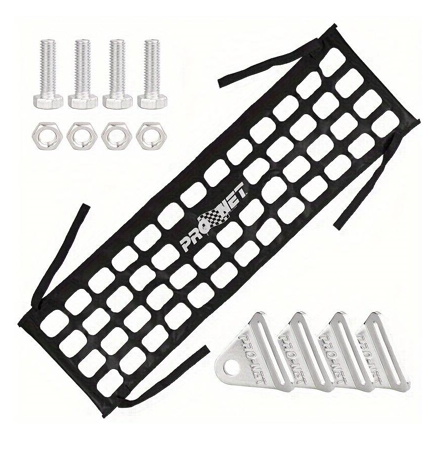 Rede elástica preta PROJET com parafusos e suportes metálicos prateados