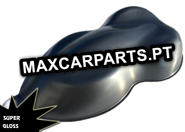 Amostra de tinta automóvel metálica azul escuro brilhante com texto e selo