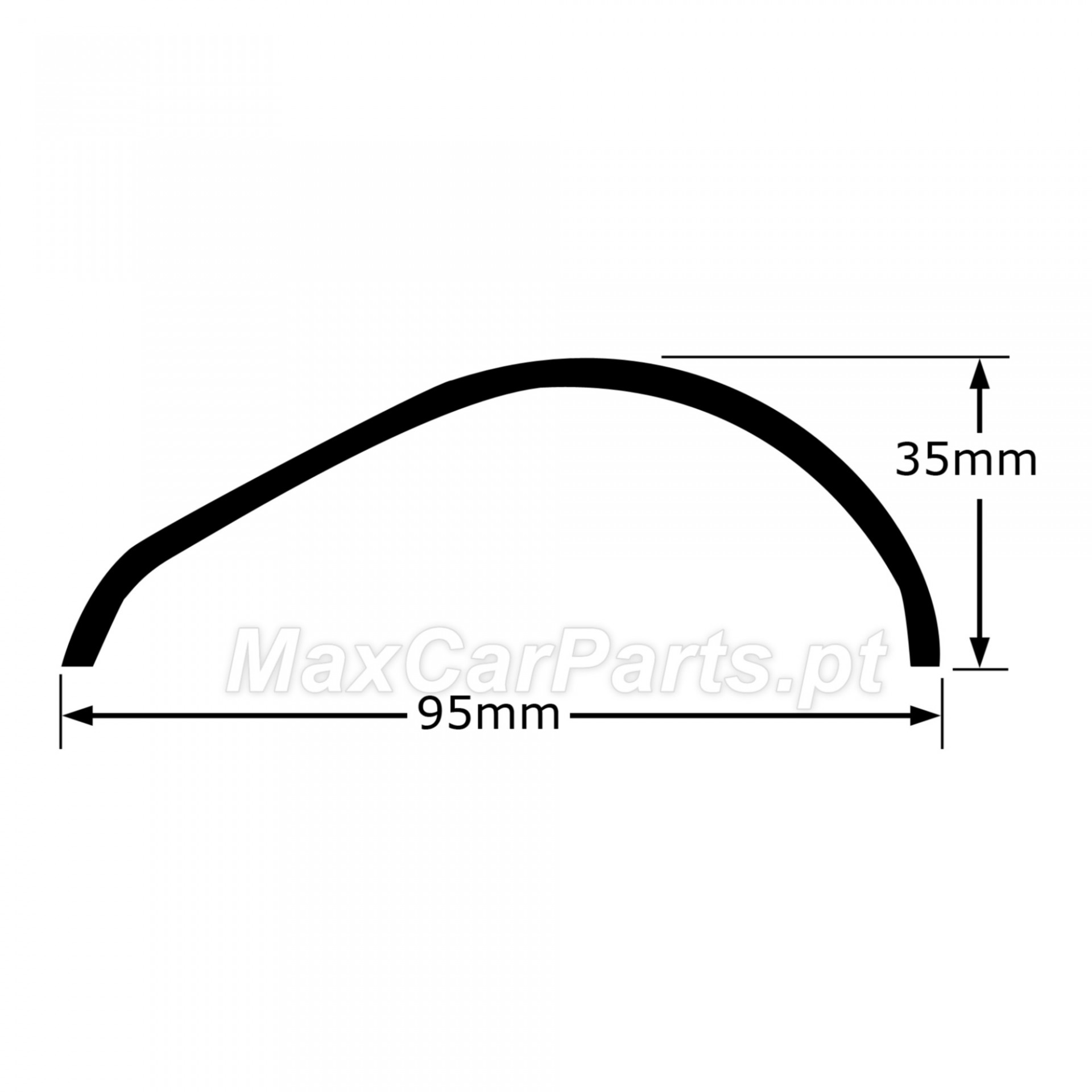 Perfil de borracha curva preta com dimensões 95mm x 35mm e texto MaxCarParts.pt